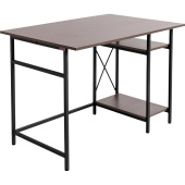 Стол компьютерный Комус Онега 5 (ясень анкор темный, 1100×750×765 мм). Каркас столов изготовлен из профильной квадратной трубы сечением 20 мм с порошковым полимерным покрытием на регулируемых опорах. Столешница и полки — ЛДСП толщиной 16 мм. Цвет каркаса — черный муар. Максимальная распределенная нагрузка на столешницу до 100 кг, на полки до 20 кг. 2 варианта сборки стола (правый или левый). -