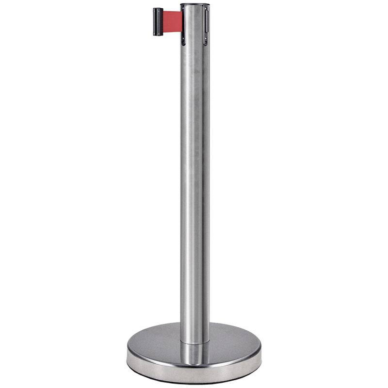 Стойка ограждения BSLN-226323 с вытяжной лентой (хромированный, красная лента 3 м)