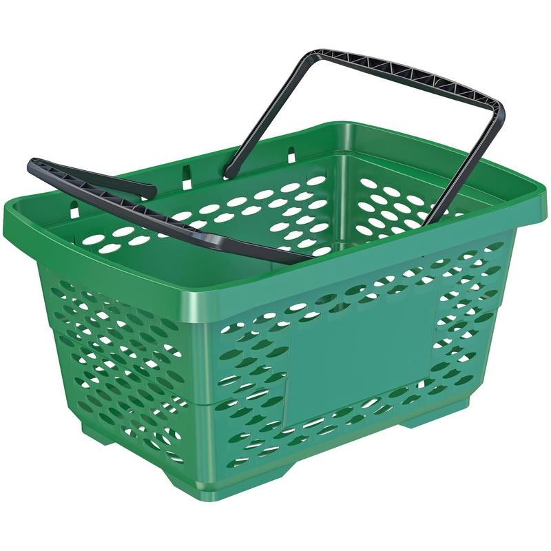 Корзина покупательская Комус Мебель пластик зелёная с чёрной ручкой