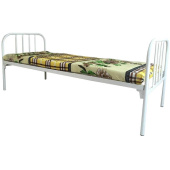 Кровать на металлическом каркасе СБ3 предназначена для использования в быту. Расстояние от пола до спального места — 380 мм. Размеры спального места — 800×1900 мм. Спальное место изготовлено из металлического профиля 40×20 и 25×25, а также электросварной сетки c ячейкой 100×50 мм, прут d=4 мм. В основании спального места для его большей прочности и надежности предусмотрено двойное усиление каркаса из профиля 20×20×1.2 мм. Спинки кровати, выполненные в виде дуг, изготавливаются из металлической трубы 32 мм. Вертикальные перемычки в спинках изготовлены из трубы диаметром 18 мм. Соединение спального места и спинок кровати клиновое, что облегчает задачу при выполнении монтажа кровати, а также придает жесткость и надежность в использовании. Клин и петля выполнены из металла толщиной 2 мм. Вес — 18.6 кг. При покраске кровати используется порошковое полимерное покрытие. Цвет кровати белый. Габаритные размеры кровати (ДxШxВ) 1964×810×790 мм.
