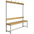 Скамья со спинкой и вешалкой СК-1В-2000 цвета ’сосна’, выполненная из натуральной древесины хвойных пород. Предназначена для использования в помещении и на улице. Прочный каркас серого цвета, скрепленный при помощи винтов и стяжек, выполнен из нержавеющей стали. Благодаря покрытию специальным антисептиком и водостойким лаком сиденье устойчиво к разрушающему воздействию окружающей среды, что обеспечивает возможность использования скамьи на открытом воздухе. Ножки регулируются по высоте. Размер скамьи — 200×39×167 см. Изображения товаров на сайте не могут гарантировать точную цветопередачу.