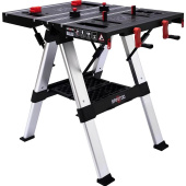 Внимание! Пожалуйста, проверяйте цвет изделия до начала сборки! Цвет на изображении товара в интернет-магазине или в печатном каталоге может отличаться от оригинала из-за особенностей цветопередачи. Стол производственный — это универсальное изделие для домашней мастерской. Не требует сборки. Столешницы выполнены из прочного пластика; усилены ребрами жесткости и выдерживают высокие нагрузки при использовании. Стальной каркас и станина из алюминия обеспечивают легкость и прочность изделия. Интегрированная зажимная система позволяет надежно фиксировать детали и заготовки разного размера и формы для обработки и сборки. Размер рабочего стола — 849×630 мм, высота рабочего стола — 810 мм. Столешницы имеют углубления для крепежа и мелких деталей, встроенная складная полка для хранения инструмента во время использования. Имеет складываемые телескопические опоры станины и удобно для хранения и транспортировки. Под наклон максимальная нагрузка на столешницу — 200 кг, горизонтальное положение столешницы максимальная нагрузка — 450 кг. Размер верстака в сложенном положении (ШхГхВ) 630×118×603 мм. Вес изделия — 11,5 кг.