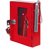 Металлическая настенная ключница для пожарного ключа Onix K1 изготовлена из стали с порошковым покрытием. Шкаф для аварийного ключа окрашен в красный цвет и предназначен для хранения 1 (одного) ключа от пожарного выхода. На лицевой стороне имеется стеклянная панель, которая в экстренных случаях или аварийной ситуации разбивается с помощью металлического молоточка. Размещение молоточка происходит с помощью магнита, разместить который можно на боковой или верхней стенки. На задней стенки имеются отверстия для крепления к стене. Шкаф поставляется в комплекте с двумя ключами, металлическим молоточком и магнитом для его крепления. Фурнитура для крепления к стене в комплект не входит.