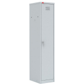 Шкаф для одежды, предназначен для хранения одежды в производственных, спортивных, образовательных и других помещениях. Обеспечивает пожаробезопасность. Состоит из одного отделения, разделенного перегородкой на 2 секции. Каждая секция комплектуется перекладиной. Шкаф имеет 1 полку для головных уборов. Наличие вентиляционных отверстий. Комплектуется ключевым замком. Тип материала — металл 0,7 мм. Количество замков — 1 (2 ключа). Тип покрытия — порошковое, цвет — серый. Нагрузка на полку до 30 кг.