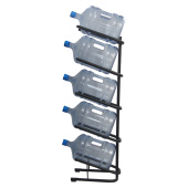 Стеллаж для бутилированной воды Бридж-5. Предназначен для организации хранения бутилированной воды в офисе, дома, на складе на минимальной площади. Полки стеллажа имеют оптимальный угол наклона, для удобства размещения и извлечения бутылей. Стеллаж оборудован подпятниками, что позволяет избежать повреждения напольного покрытия при его перемещении. Основание стеллажа не замкнуто, что удобно для уборки пола. Стеллаж имеет порошковое покрытие черного цвета, устойчивое к истиранию. Толщина труб из стали равна 1,5 мм. Нагрузка на полку до 25 кг.