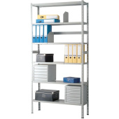 Стеллаж металлический, предназначены для хранения документов и грузов в офисе, на складах, в гаражах, в мастерских и дома. Стеллажи имеют современный внешний вид, удобную и надежную конструкцию. Легкая сборка стеллажей с использованием болтового соединения. Регулировка полок по высоте шагом 25 мм. Максимальная распределенная нагрузка на полку 100 кг. Общая нагрузка на стеллаж не более 500 кг. Цвет серый (RAL 7038). Количество полок 6 штук.