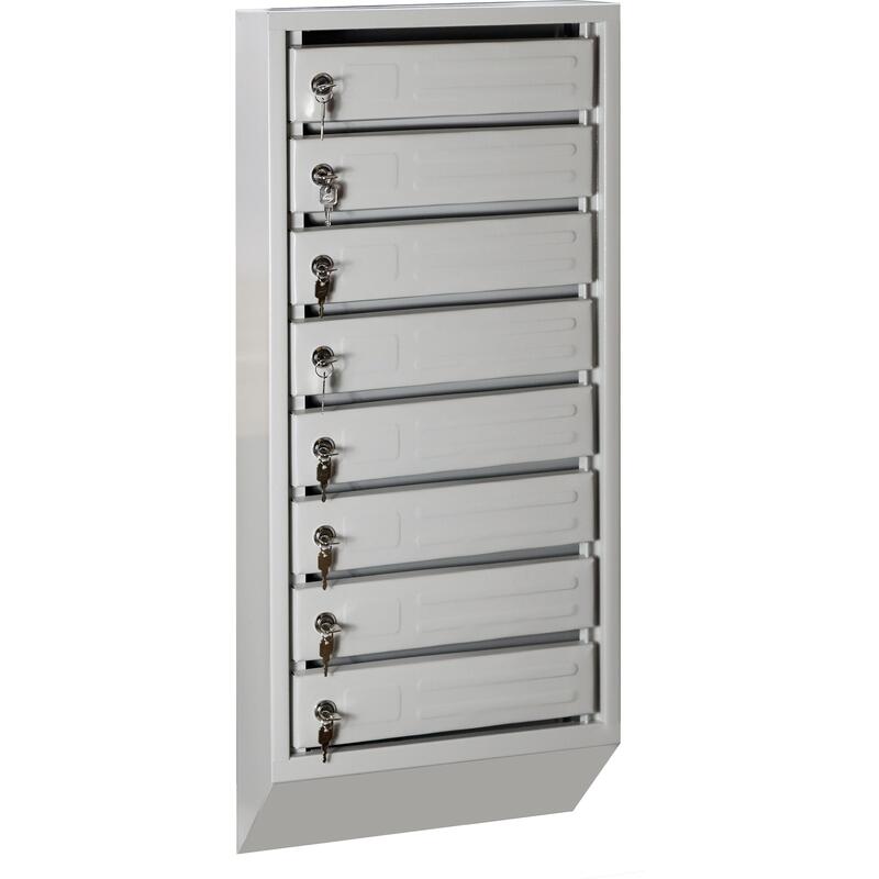 Торговая марка Klesto Цвет серый Тип замка ключевой Количество отделений 8 Вес, кг 8 Гарантийный срок 12 мес Ширина, мм 395 Высота, мм 890 Сборка мебели сборка не требуется Глубина, мм 120 Возможность крепления к стене Да Корпус металлический Подходит для конвертов А4 Да Количество ключей к замку 2 шт. -