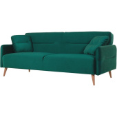 Стильный диван в скандинавском стиле Релакс Hygge. Простой в использовании механизм трансформации Relax, одним движением превращает диван в комфортную кровать со спальным местом 1140×1900 мм, или в место для отдыха, с откидывающейся в 2 положения спинкой. Обивочный материал — тактильно приятная, износостойкая ткань (велюр). Цвет зеленый. Стильные деревянные опоры из натурального бука высотой 170 мм. Высота сиденья — 420 мм. Диван поставляется в разобранном виде, на месте требуется установка опор и подлокотников. В комплекте идут две декоративные подушки.
