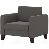 Каркас кресла Берген выполнен из массива хвойных пород и березовой фанеры. Каркас неразборный. Материал из искусственной кожи. Материал опор из массива дерева, высота 150 мм. Высота сиденья 400 мм.