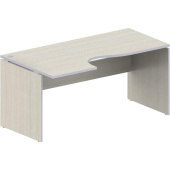 Стол эргономичный изготовлен из высокопрочного, термовлагостойкого ЛДСП, класс эмиссии Е-1. Столешница сделана из ЛДСП толщиной 25 мм, торцевые поверхности которой защищены кромкой ПВХ толщиной 2 мм. Подстолье стола состоит из двух стенок боковых и царги, состоящей из двух частей одинакового размера (1164×192 мм), изготовленных из ЛДСП толщиной 18 мм. Видимые торцевые поверхности боковых стенок защищены кромкой ПВХ толщиной 1 мм. Невидимая торцевая поверхность и торцевые поверхности царг защищены кромкой из меламина. Столешница и опоры соединены декоративной проставкой размером 80×26×16 мм. Проставки изготовлены из МДФ, окрашены в цвет алюминий. В столешницах предусмотрено отверстие для проводов с декоративной пластиковой заглушкой, что обеспечивает удобство прокладки коммуникаций. Изделие собирается на двухкомпонентных эксцентриковых стяжках и деревянных шкантах. Стол регулируется по высоте при помощи опоры регулируемой (диапазон регулировки: 12 мм). Материал и толщина столешницы, кромки — ЛДСП толщиной 25 мм, кромка ПВХ толщиной 2 мм. Материал и толщина каркаса, кромки — ЛДСП толщиной 18 мм, кромка ПВХ толщиной 1 мм. -