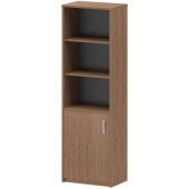 Шкаф-колонка Арго выполнен из ЛДСП цвета орех. Имеет четыре навесных полки, две из которых закрываются правосторонней дверцей. Кромки отделаны прочным ПВХ для защиты от повреждений. Цвет задней стенки темно-серый. -