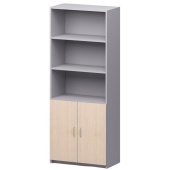 Шкаф высокий полузакрытый коллекции СП-Бюджет выполнен из ЛДСП толщиной 16 мм. Кромка защищена лентой из ПВХ, толщиной 0,45 мм. Задняя стенка шкафа выполнена из ХДФ, толщиной 3 мм. Кромка всех деталей серого цвета. Шкаф оснащен низкими дверцами, цвета дуб шамони светлый. Цвет корпуса серый.