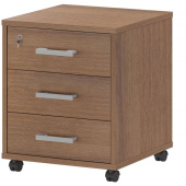 Выкатная тумба Арго имеет размеры 58×44 см и глубину 45 см. Изготовлена из деревоплиты (ДСП) с износостойким ламинированным покрытием цвета орех. Оснащена тремя выдвижными ящиками, верхний из которых закрывается на ключ. Кромки отделаны лентой из ПВХ для защиты от повреждений. Основание тумбы с четырьмя роликами для удобного перемещения. Боковая и задняя стенка выдвижного ящика выполнена в цвете лайм. -