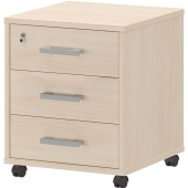 Выкатная тумба Арго имеет размеры 58×44 см и глубину 45 см. Изготовлена из деревоплиты (ДСП) с износостойким ламинированным покрытием цвета бук. Оснащена тремя выдвижными ящиками, верхний из которых закрывается на ключ. Кромки отделаны лентой из ПВХ для защиты от повреждений. Основание тумбы с четырьмя роликами для удобного перемещения. Боковая и задняя стенка выдвижного ящика выполнена в цвете лайм. -