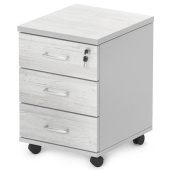Топ (верхняя крышка) тумбы Easy Standard и фасады выдвижных ящиков изготовлены из ЛДСП толщиной 18 мм в декоре сосна винтер; каркас ЛДСП 18 мм серого цвета. Дно ящика из ХДФ толщиной 3,2 мм. Кромка видимых поверхностей — серого цвета. Тумба мобильная — в комплекте мебельные ролики черного цвета. Ручки металлические (цвет серебро). Установлен замок, закрывающий верхний ящик. -