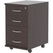 Тумба применяется расширения функционала рабочего стола. Оборудована четырьмя ящиками, верхний из которых закрывается на ключ. Изготовлена из ЛДСП цвета венге магия. Кромка из ПВХ защищает от механических повреждений. Материал и толщина топа и кромки: ЛДСП 22 мм, ПВХ 2 мм. Материал и толщина каркаса и кромки: ЛДСП 18 мм, ПВХ 2 мм, 0,4 мм. Материал и толщина задней стенки: ЛДСП 18 мм. -
