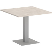 Стол Universal квадратный. Столешница изготовлена из ЛДСП толщиной 25 мм (производство Kronospan). Кромка ПВХ толщиной 2 мм по перимеру. Квадратная опора — труба с сечением 100×100 мм. Столы устанавливаются на фетровые подпятники. -