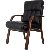 Внимание! Пожалуйста, проверяйте цвет изделия до начала сборки! Цвет на изображении товара в интернет-магазине или в печатном каталоге может отличаться от оригинала из-за особенностей цветопередачи. Кресло Бюрократ T-9932 для посетителя. Конструкция: Каркас и подлокотники деревянные цвета «тёмный орех». Материал обивки - экокожа чёрного цвета. Ограничение по весу: 120 кг. Соответствует стандарту BIFMA. Гарантия: 24 мес.