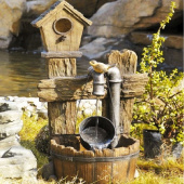 Фонтан декоративный садовый Green Apple Лесной дом 73.5 см с подсветкой Садовые фонтаны — отличное решение, если Вы хотите украсить ландшафт участка своего загородного дома, коттеджа или дачи с минимальными затратами сил и средств. В последнее время садовыми фонтанами облагораживают территории не только частных домовладений, но и общественных мест для отдыха: ресторанов, кафе, гостиниц, санаториев, пансионатов, парков, скверов и т. д. Фонтан «Лесной дом» от компании Green Apple преобразит пейзаж Вашего сада и создаст уютную атмосферу! Работает от сети. Не требуется подключение к водопроводу.