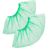 Бахилы (чехлы для обуви) нестерильные полиэтиленовые. Текстурированные, обеспечивают антискольжение. Зеленого цвета. 2,8 г. В упаковке 50 пар (100 бахил). В транспортной коробке 3500 пар. В дополнение к ним можно приобрести одноразовый халат Кимоно (материал спандбонд), так же зеленого цвета, артикул 552884. Допустимое отклонение от заявленных параметров +/- 10%