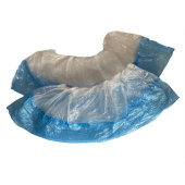 Бахилы медицинские одноразовые нестерильные бело-синие с двойной подошвой с одной резинкой. Применяются в гигиенических целях для сохранения чистоты помещений от уличной грязи. Используются в медицинских учреждениях, в помещениях особо чистых производств, в музеях, фитнесс центрах, школах и т.д. Материал бахил — полиэтилен низкого давления (первичное сырье). Толщина пленки в один слой 10+10 мкм, вес одной пары 3,6 г. Упакованы в полиэтиленовый пакет по 50 пар.