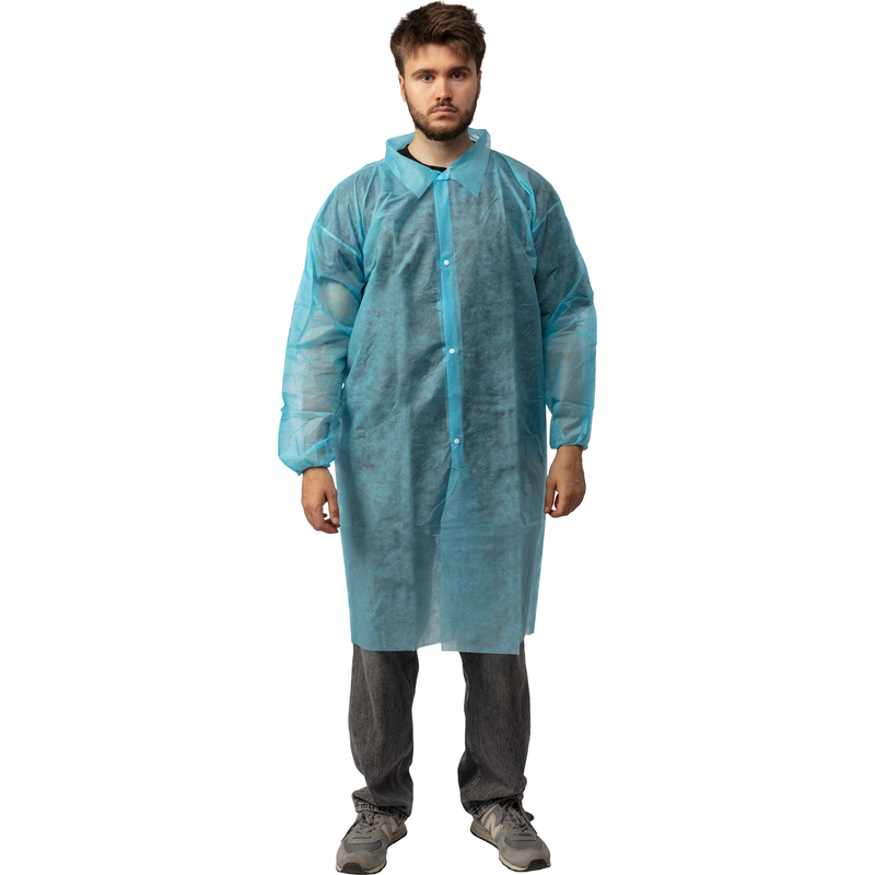 Халат одноразовый для посетителя Вендорс на кнопках голубой размер XL
