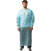 Халат хирургический «Стандарт+», стерильный, изготовлен из нетканого материала СМС, плотностью 40 г/кв.м Халат имеет: застежку типа «липучка» в области воротника (область шеи) со стороны спины, две пары завязок (сложенные в три слоя и прошитых нитками), обеспечивающих стерильность спины, картонный фиксатор завязок, крепление завязок к халату с помощью ультразвуковой сварки. Окантовка горловины из нетканого материала, манжеты высотой 7 см изготовлены из эластичного полотна. Критические (рабочие) зоны халата выполнены с помощью ультразвуковой сварки. Халат сложен специальным образом для удобства асептического надевания без дополнительной помощи персонала, дополнительно упакован нетканый материал в персональной стерильной упаковке имеющей индикатор стерильности. Цвет — голубой.