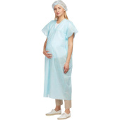 Рубашка для роженицы одноразовая (голубая). Длина 110 см, рукав короткий, размер 52-54. Изготовлена из гипоаллергенного, безворсового, воздухопроницаемого, водоотталкивающего полипропиленового нетканого материала плотностью 25 г/кв.м. Упакована в комбинированный пакет из бумаги медицинской и многослойной полимерной пленки. Упаковка имеет систему быстрого вскрытия без помощи ножниц тип 'пил-эффект', позволяющую сохранять стерильность содержимого при вскрытии. Вид стерилизации оксидом этилена, что позволяет избежать деструкции, снижение физико-механических свойств на материалы из которых изготовлены изделия. Стерильно. Срок годности 3 года. Количество штук в транспортной упаковке: 120.
