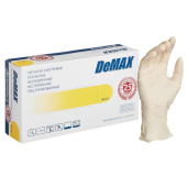 Перчатки латексные смотровые нестерильные неопудренные DeMax. Область применения: процедуры, требующие применения неопудренных перчаток (стоматология и т. д.), наличие аллергических реакций на пудру у персонала и пациентов. Перчатки подвергаются промыванию хлорсодержащими растворами для практически полного вымывания белков латекса, что способствует существенному снижению аллергенности. Текстура по рабочей поверхности, неопудренные, имеют неанатомическую форму, манжета заканчивается валиком. Размер: S. Количество в упаковке: 100 штук (50 пар).