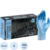 Назначение: нестерильные универсальные перчатки из винила предназначены для хозяйственных работ, при проведении парикмахерских и косметологических процедур, на пищевых производствах. Конструкция: внешняя поверхность этих перчаток гладкая, благодаря чему во время работы сохраняется высокая тактильная чувствительность и обеспечивается особо прочный захват. Одноразовые перчатки внутри неопудрены, благодаря чему упрощается их надевание. Форма: универсальные перчатки обладают неанатомической (плоской) формой, благодаря чему нейтрализуется усталость мышц кисти даже после длительной работы. Дополнительные свойства: манжеты перчаток вывернуты наизнанку, что упрощает надевание. Размер перчаток — 6.5-7 (S). Длина — 240 мм. Противопоказания и меры предосторожности: непереносимость материалов. Упаковка и условия хранения: перчатки упакованы в картонную коробку. Хранить перчатки следует в сухом, прохладном и тёмном месте.