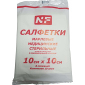 Стерильные марлевые медицинские салфетки упакованы в индивидуальную упаковку, наружная упаковка — комплектуются по 10 штук в полиэтиленовой упаковке.