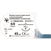 Шовный материал хирургический нерассасывающийся Полипропилен USP 5/0 45 см обратно-режущая игла 16 мм 3/8 (12 штук в упаковке). Полипропиленовый шовный материал — это стерильный синтетический нерассасывающийся монофиламентный шовный материал, выпускаемый в двух вариантах: с иглой и без иглы. Препарат не следует применять для сердечно-сосудистых и неврологических тканей. Полипропиленовые шовные материалы могут вызывать небольшую острую воспалительную реакцию тканей, после чего происходит постепенная инкапсуляция шовного материала волокнистой соединительной тканью. Шовные материалы биологически инертны, не рассасываются, не деградируют и не повреждаются тканевыми ферментами. Хорошая проходимость, высокая прочность. Синтетические монофиламентные шовные материалы мягкие и гладкие, с минимальной реакцией тканей. Они мягко проходят через ткани, не пилят, не перетягивают ткани и не травмируют их, не содержат капилляров (не поддерживают рост бактерий). Хорошая биосовместимость. Иглы из нержавеющей стали обеспечивают превосходную устойчивость к разрывам. Одноразовые, что позволяет исключить перекрестное заражение. Двухслойная герметичная упаковка обеспечивает герметичность и стерильность продукта. Длительное растягивающее усилие гарантирует хорошую и длительную организационную поддержку.