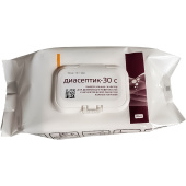 Салфетки Диасептик-30 С универсальные для дезинфекции поверхностей и антисептической обработки кожных покровов. Состав пропиточного раствора: полигексаметиленбигуанид гидрохлорид, изопропиловый спирт (30%), функциональные добавки, в т. ч. в капсулированной форме, вода очищенная. Микробиоцидная активность в отношении: грамотрицательных и грамположительных бактерий (в т. ч. возбудителей туберкулеза и ИСМП); вирусов (включая коронавирусы, вирусы энтеральных и парентеральных гепатитов, полиомиелита, ВИЧ, атипичной пневмонии, гриппа, в т. ч. H1N1, H5N1 и др.); патогенных грибов (включая грибы рода Кандида и дерматофиты). Назначение: быстрая дезинфекция небольших по площади поверхностей и изделий, включая изделия медицинской техники, стоматологическое оборудование и приспособления, датчики диагностического и лечебного оборудования (в т. ч. УЗИ и др.); обеззараживание медицинских перчаток; обработка обуви с целью профилактики грибковых заболеваний; гигиеническая обработка кожи рук; обработка ступней ног с целью профилактики грибковых заболеваний. Преимущества: универсальное применение; дезинфекция датчиков аппаратов УЗИ и другого диагностического и лечебного оборудования; средство первой необходимости на рабочем месте каждого медицинского работника. Пролонгированный антимикробный эффект не менее 3 часов. Время экспозиции от 30 секунд. Законодательные и технические документы