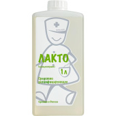 Дезинфицирующее средство «Лакто» 1 л (концентрат). Химический состав дезсредства: ЧАС, альдегид, кислоты, вспомогательные компоненты. Действующие вещества: алкилдиметилбензиламмоний хлорид (АДБАХ) 6%, глутаровый альдегид 2.5%, молочная кислота 6%, вспомогательные компоненты. Сфера применения: акушерские стационары, ЛПУ, клинические лаборатории, станции переливания крови, бактериологические лаборатории, пенитенциарные учреждения, инфекционные очаги, санитарный транспорт, диагностические лаборатории, вирусологические лаборатории. Объекты обработки: аптечная посуда, вращающиеся стоматологические инструменты, выделения больного (моча, фекалии, мокрота), гибкие эндоскопы, жесткая мебель, жесткие эндоскопы, жидкость после ополаскивания зева, ИМН из металлов, резин на основе натурального и силиконового каучука, стекла, пластмасс, ИМН обычные, инструменты к эндоскопам, инструменты стоматологические, инструменты хирургические, кровь, лабораторная посуда, мед. отходы из текстильных материалов (ватные и марлевые тампоны, марля, бинты), мокрота, моча, наркозно-дыхательная аппаратура, обувь из пластика, резины, одноразовая посуда, пищевые отходы, плевательницы, поверхности в помещениях, поверхности приборов и аппаратов, предметы ухода за больными, резиновые и полипропиленовые коврики, санитарно-техническое оборудование, слюноотсосы, смывные воды, стоматологические материалы (оттиски из альгината, силикона, полиэфирной смолы, зубопротезные заготовки, артикуляторы), уборочный инвентарь, фекально-мочевая взвесь, эндоскопические смывные воды. Класс опасности: при введении в желудок — 3; при нанесении на кожу — 4; рабочего раствора — 4. Активно в отношении: — бактерии (Mycobacterium tuberculosi, грамотрицательные бактерии, грамположительные бактерии); — вирусы (аденовирусы, атипичной пневмонии, ВИЧ, гепатита А, гепатита В, герпеса, грипп, парагрипп, парентеральных гепатитов, полиомиелит, прочие возбудители ОРВИ, птичьего гриппа (H5N1), ротавирусы, энтеральных гепатитов, энтеровирусы); — возбудители особо опасных инфекций (холера, чума); — патогенные грибы (дерматофитон, кандида, плесневые грибы). Срок годности: в упаковке — 3.5 года, в рабочем растворе — 30 дней. Страна производства: Россия.