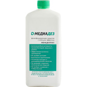Дезинфицирующее средство Медиадез 1 л (концентрат). Представляет собой прозрачную жидкость без механических примесей от желто-зеленого до зеленого цвета со слабым специфическим запахом или запахом применяемой отдушки. Состав: N, N-бис-(3-аминопропил) додециламина — 2,5%, алкилдиметилбензиламмоний хлорида — 7%, полигексаметиленгуанидин гидрохлорида и полигексаметиленбигуанидин гидрохлорида — 2,4% (суммарно), моющий компонент, ингибитор коррозии, отдушка, вода. Антимикробная активность в отношении: — грамотрицательных и грамположительных бактерий (включая микобактерии туберкулеза Mycobacterium terrae); — возбудителей внутрибольничных инфекций (ВБИ); — кишечных инфекций — бактерий группы кишечной палочки, стафилококков, стрептококков, сальмонелл; — вирусов (включая аденовирусы, вирусы гриппа, парагриппа и др. возбудителей острых респираторных инфекций, энтеровирусы, ротавирусы, вирус полиомиелита, вирусы энтеральных, парентеральных гепатитов, герпеса, атипичной пневмонии, птичьего гриппа, свиного гриппа, ВИЧ и др.); — грибов рода Кандида, Трихофитон (дерматофитий); — плесневых грибов Aspergillus niger; — возбудителей анаэробных инфекций; — возбудителей легионеллеза; — особо опасных инфекций (чумы, холеры, туляремии). Срок хранения концентрата — 5,5 лет, срок хранения рабочего раствора — 35 суток. Товар является экологически безопасным, что подтверждено сертификатом ЭКО. Законодательные и технические документы