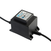 Трансформатор 220В — вход, 24В — выход, 40Вт. Подходит для подключения гирлянды «Нить» 24В (5 шт.= 50 м). Длина шнура питания: от трансформатора до вилки 100 см, от трансформатора до разъема подключения 60 см. Размер трансформатора: 93×64×70 мм.