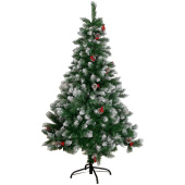 Елка новогодняя Зимнее волшебство Иней с ягодками напольная 1.5 м. Новый год — любимый праздник практически каждого. Яркий праздник в середине зимы раскрашивает мир разноцветными огнями, помогает взрослым вернуться в детство, делает окружающих чуточку добрее. Накануне Нового года всем хочется поддержать радостную атмосферу праздника, украсить свое жилище или офис. И не просто украсить, а так, чтобы было лучше, чем у соседа! Наша елка «Иней с ягодками» поможет вам в деле декорации. Она выглядит как живая — при этом иголки с нее не осыпаются. А после праздников просто соберите искусственное дерево и спрячете в коробку до будущего года. Материал подставки — металл зеленого цвета. Размер упаковки — 90×17×16 см.