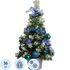 Ёлка искусственная новогодняя настольная заснеженная с украшениями 36 см Искусственная настольная ёлка высотой 36 см выполнена из ПВХ с эффектом заснеженности и украшена декоративными элементами синего цвета. Компактная модель предназначена для создания праздничной атмосферы дома или в офисе. Хвоя изготовлена из полимерных материалов и фольги, что придаёт изделию мягкое сияние. Конструкция включает 40 ветвей, расположенных на 7 ярусах, и установлена в пластиковое основание в виде корзинки. Игрушки и декоративные элементы выполнены из пластика и текстиля: цветы, банты и шары гармонично дополняют внешний вид. Размер изделия — 36×22×22 см, диаметр нижнего яруса — 22 см, вес — 0.18 кг. Упакована в плёнку, размеры упаковки составляют 38×25×10 см.