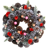 Венок хвойный новогодний Miland Нежность (диаметр 30 см, НУ-3612). Новогодний венок с основой из искусственных веток станет зимним декором интерьера квартиры, магазины, офиса, а также прекрасным подарком родным и близким. Это достойная альтернатива большому Рождественскому дереву в маленьких помещениях и нужный атрибут для новогодних фотозон. Его можно повесить на камин, стену или дверь. Или украсить им праздничный стол, дополнив свечами.