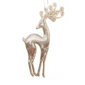 Рождественскый олень из акрила великолепно украсит елку настоящую перед Новым годом. Игрушка выполнена в золотистом цвете, который будет красиво переливаться в лучах гирлянд. Елочное украшение имеет достаточно крупный размер — 16,5 см — поэтому оно подойдет и для оформления больших елок, и для хвойных красавиц среднего размера.