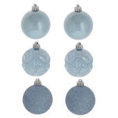 6-ти елочных шаров, диаметром 6 см, выполнен в единой цветовой гамме. В составе набора — пластиковые шары разной фактуры — глянцевые и рельефные с глиттером. Прекрасно смотрятся в убранстве новогодней ели. Крепятся с помощью петли из ленты/нити. Поставляются в прозрачной пластиковой упаковке. -