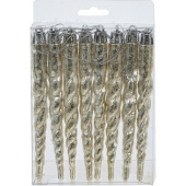 Набор елочных игрушек Сосулька акрил серебристое (высота 13 см, 8 штук в упаковке). Набор из 8 серебристых сосулек (13 см), закрученных спиралью, подойдет для новогоднего украшения. Размер упаковки набора со сосульками составляет 10×1.5×15 см. Эти стильные декоративные элементы, присыпанные снежным глиттером, придадут вашей елке изысканности и праздничного настроения, внося свою неповторимую нотку в обстановку.