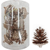 Украшения в виде шишек идеально подойдут для оформления новогодних деревьев в экостиле. Подойдет для полноценного декора небольшой елки. Шишки хорошо будут сочетаться с другими элементами праздника, они будут хоть и не броской, но оригинальной изюминкой убранства елки. Также шишки можно использовать для декора помещения и оформления подарков. В наборе 10 елочных пластиковых игрушек (10 шишек — 4.5 см).
