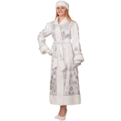 Костюм карнавальный взрослый Снегурочка размер 46, 21-31-46. Костюм Снегурочки «Белоснежка» — создайте сказочный образ Снегурочки на Новый год: этот костюм с изящным белым нарядом станет прекрасным выбором для волшебного праздника. В набор входит: шуба, изготовленная из мягкого и приятного на ощупь полиэстера и украшенная элегантной отделкой. Красивая шапка Снегурочки с традиционным дизайном. Изящный пояс, подчеркивающий талант Снегурочки. Уютные и теплые варежки, выполнены в тон костюму. Костюм отлично подойдет для проведения праздника в детских садах, школах, на корпоративах, в домашних условиях. Характеристики: размер — 46. Цвет: белый. Материал: 100% полиэстер. Производство: Россия.