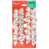 Новогоднее украшение Magic Time Бант текстиль серебристое. Бант — одна из традиционных разновидностей украшения для новогодней ели. Банты придают елке большую пышность, помогают заполнить промежутки между игрушками и дополняют другой декор. Банты также широко применяются в качестве оформления для интерьера, ведь закрепить их можно практически на любую поверхность. Набор состоит из 12 бантов. Размер каждого банта: 5×5 см. Материал: полиэстер.