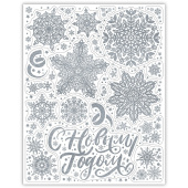 Торговая марка Magic Time Тип новогоднее украшение Цвет серебристый Страна происхождения Китай Материал ПВХ Размер 38x30 Схема вложения 250 шт. Поверхность с блестками Особенности с блестками , с раскраской Многоразовое использование Да -