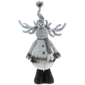 Игрушка набивная Олень (высота 61 см). Встречайте Новый год с очаровательной интерьерной игрушкой — Оленем, который добавит в ваш дом праздничную атмосферу! Этот милый олень одет в теплый вязаный свитер и красный новогодний колпак. Его мордочка выполнена из мягкого светло-коричневого меха, что делает его особенно милым и трогательным. Рога выполнены из коричневой гладкой ткани, имитирующей кожу, добавляя игрушке реалистичности. Особая изюминка — колпак! В него встроена проволока, что позволяет придать ему любую забавную форму. Олень станет отличным дополнением к вашему новогоднему декору и подарит вам незабываемые впечатления от праздника! Размер — 35×14×61 см.