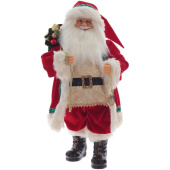 Фигурка декоративная Дед Мороз (высота 92 см, 812838). Дед Мороз впечатляет своим размером и детализацией. От костюма из красного бархата до выразительного лица — каждая деталь проработана великолепно. Из полимерных материалов выполнены лицо, руки и сапоги, придающие образу реализм. В руках у Деда Мороза мешок с подарками и даже часы на цепочке.