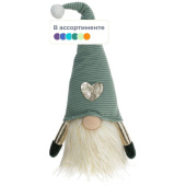 Игрушка мягкая набивная Гном (высота 46 см). Игрушка набивная Гном изготовлена из мягких текстильных материалов различной структуры. Гном с бородой без глаз в длинном колпаке с золотым сердечком. За счет проволоки в колпаке, ему можно придать забавную форму. Такая игрушка отлично дополнит новогоднее или рождественское украшение дома. Интерьер приобретет индивидуальность и теплоту. Представлена в двух вариантах: серо-зеленом и тесно-зеленом.