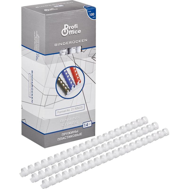Пружины для переплета пластиковые ProfiOffice 14мм, белые 100шт/уп. (для сшивания 120 листов)